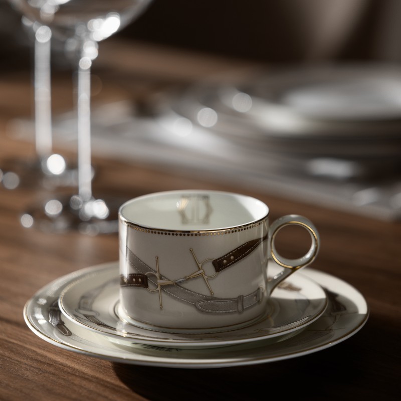 Авторский дизайн «Эквилион» разработан в греческом креативном бюро Togas. Бежевый, коричневый и теплый серый – это цвета стремян, седла и шелковистой гривы лошади. Чашка и блюдце украшены изящным орнаментом, в котором легко угадываются детали конской амуниции, точно передана текстура и блеск кожи. Дополнительное оформление каймой из золота 24 карата добавляет изделиям изысканности. Посуда «Эквилион» – выбор всех, кто любит конную символику, благородство фарфора и изысканность его оформления. Она дает возможность наполнить обстановку образами и мотивами королевских конных турниров, а также создать утонченную атмосферу в аристократическом стиле.Представленная информация носит справочный характер. Пожалуйста, уточняйте наличие товара и актуальную цену по телефону магазина.