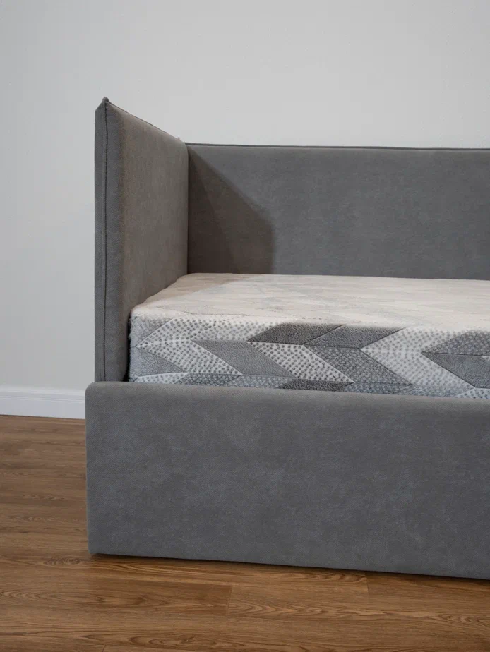 Обивка выполнена из высококачественного велюра, который выдерживает более 70 000+ циклов истиранияи легко очищается, что делает кровать лёгкой в уходе и идеально подходящей для детской комнаты. Внутренняя обивка из файбертекса обеспечивает дополнительный комфорт.