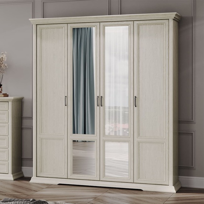 Шкаф Лоренцо 4-х дверный с зеркалами, дуб сторсанд