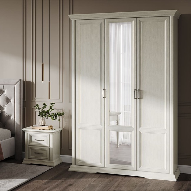 Шкаф 3-х дв. Lorenzo дуб сторсанд представлен моделью с центральным зеркалом.
