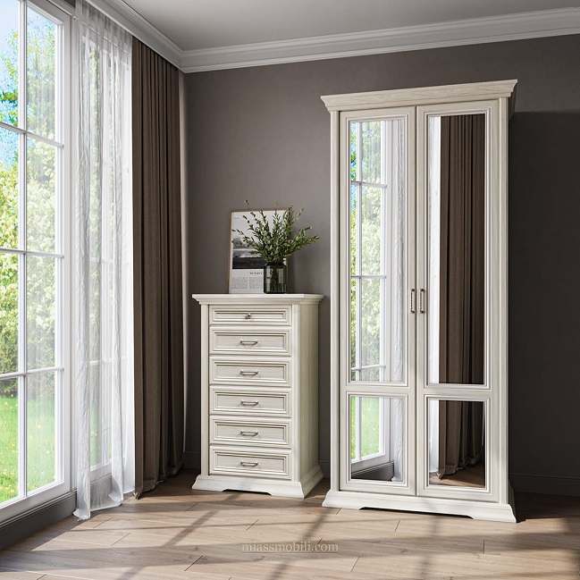 Шкаф 2-х дв. Lorenzo дуб сторсанд с зеркалами. Функциональное наполнение шкафа позволит удобно и комфортно разместить необходимые вещи. Установлены 2 полки: в верхней и нижней части шкафа.