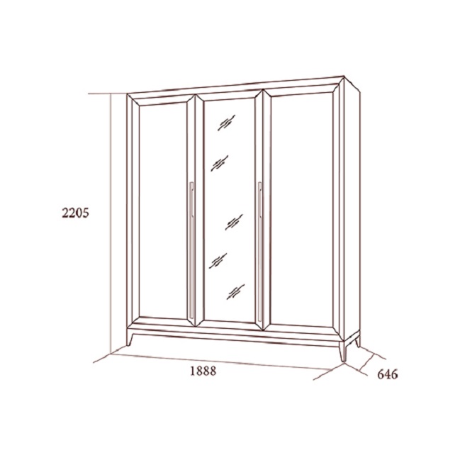 Высота 220,5 смШирина 188,8 смГлубина 64,6 смКоличество дверей 3Тип дверей РаспашныеЗаполнение фасада ЗеркалоМатериал фасада Массив дерева, ШпонМатериал каркаса Массив дерева, ШпонМесто размещения Спальня, Детская, ПрихожаяАнтиквариат НетПрименение техники старения НетНавесной НетУгловой НетВстраиваемый НетРучки ДаШпингалеты ДаЗамки НетКрючки НетВешало ДаДоводчик ДаСтрана РоссияПроизводитель Миассмебель