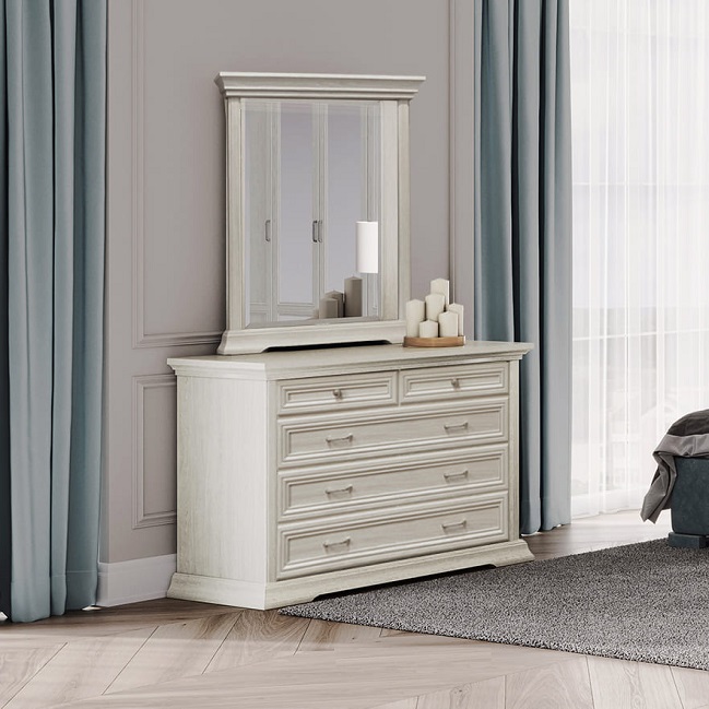 Высота 86,6 смШирина 130,4 смГлубина 52 смМатериал фасада ЛДСПМатериал каркаса ЛДСПМесто размещения Спальня, ДетскаяМатериал ящиков ЛДСПМатериал ручек МеталлКоличество ящиков 5 и болееАнтиквариат НетПрименение техники старения ДаС зеркалом НетАмортизатор ящиков НетСтопор ящиков НетСтрана РоссияПроизводитель Миассмебель