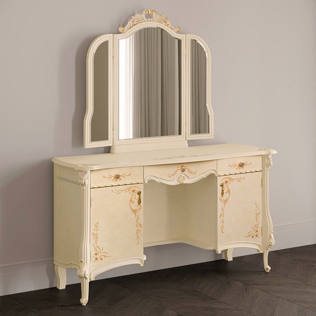 Стол туалетный из набора мебели для спальни Prestige, партия №3. Декорирован ручной художественной росписью с позолотой и декоративными элементами.