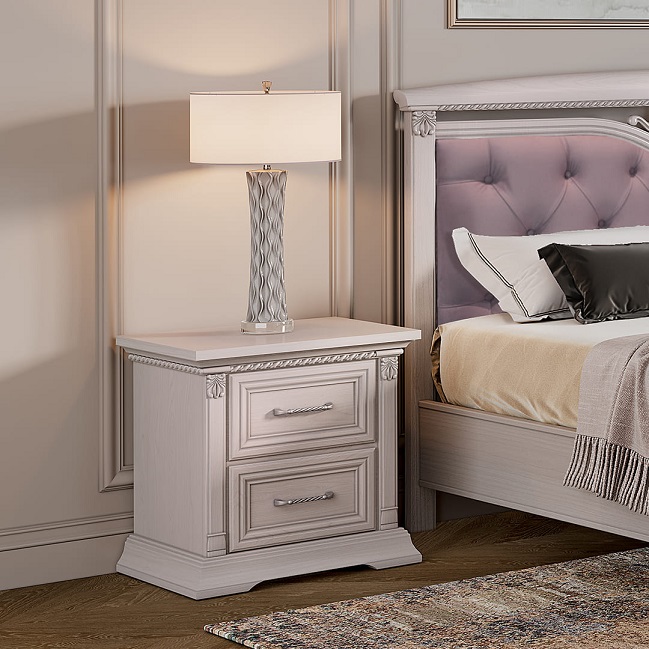 Тумба прикроватная имеет два ящика. В изделии используется шпон и массив ясеня. Качественная бесшумная фурнитура с доводкой позволит долгое время наслаждаться любимым изделием.Стильные ручки дополнят привлекательный образ миниатюрной тумбы.