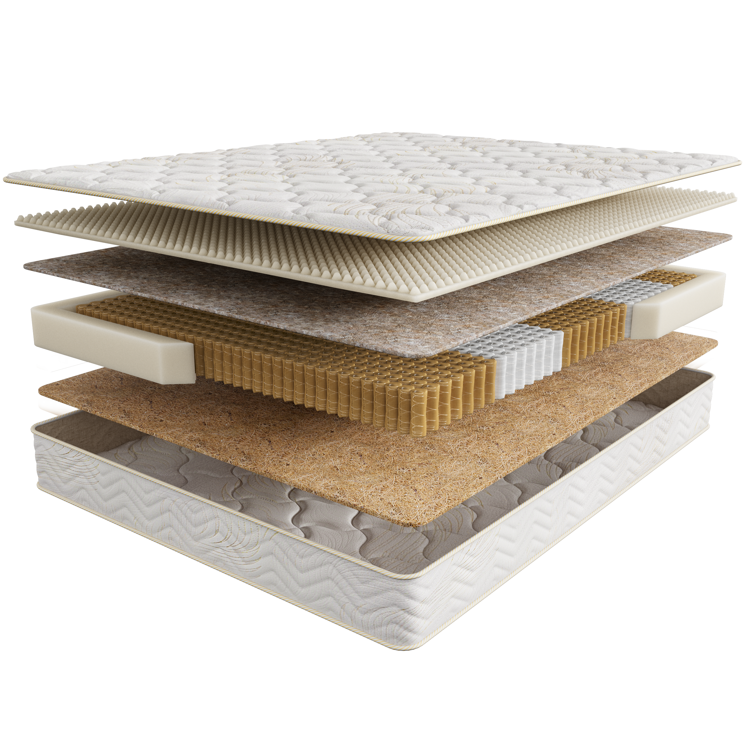 BICocos — это инновационный синтезированный материал с полиэфирными волокнами. Прочность наполнителя Bicocos в разы выше кокосовой койры, а значит наполнитель более долговечен. Bicocos имеет более жесткую поверхность, создавая упругое спальное место: