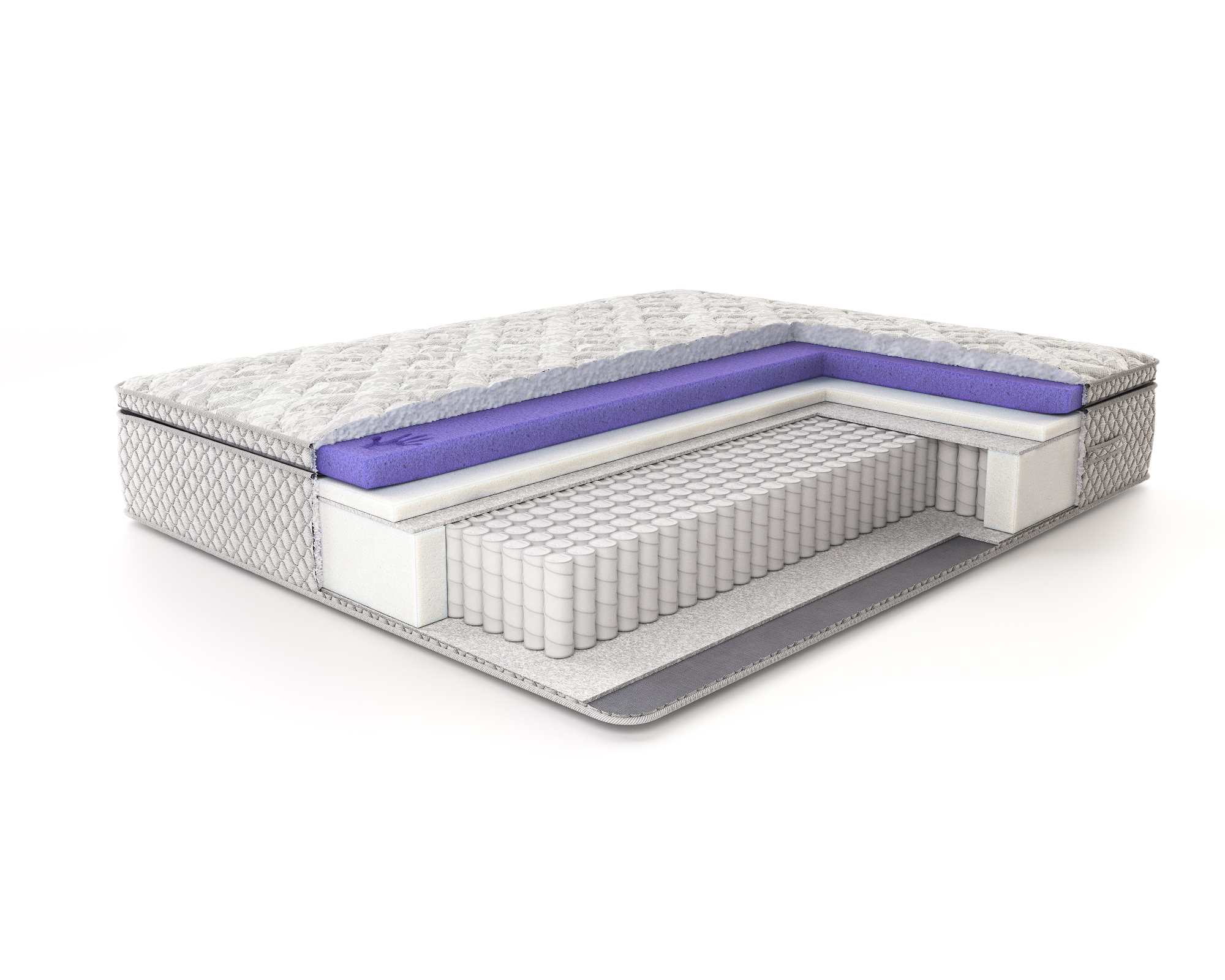 Чехол матраса и топпера: изысканный чехол из мягкого и износостойкого премиального трикотажа, простёганного на объёмном волокне холлкон 300 гр., ППУ 1 см и спанбонде — приятен визуально и тактильно, повышает уровень комфорта.