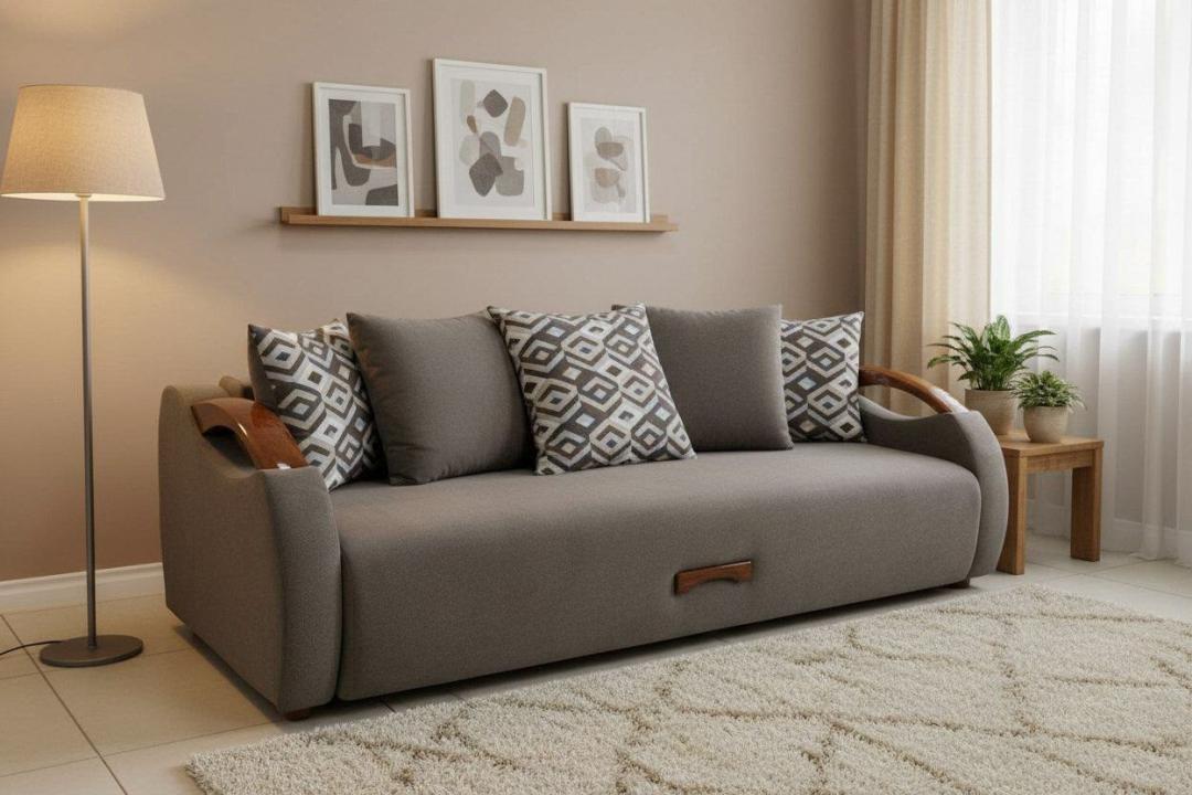 Очень выносливый диван (усиленный пружинный блок выдерживает нагрузку до 160 кг) с поистине роскошными подлокотниками из натурального дерева.