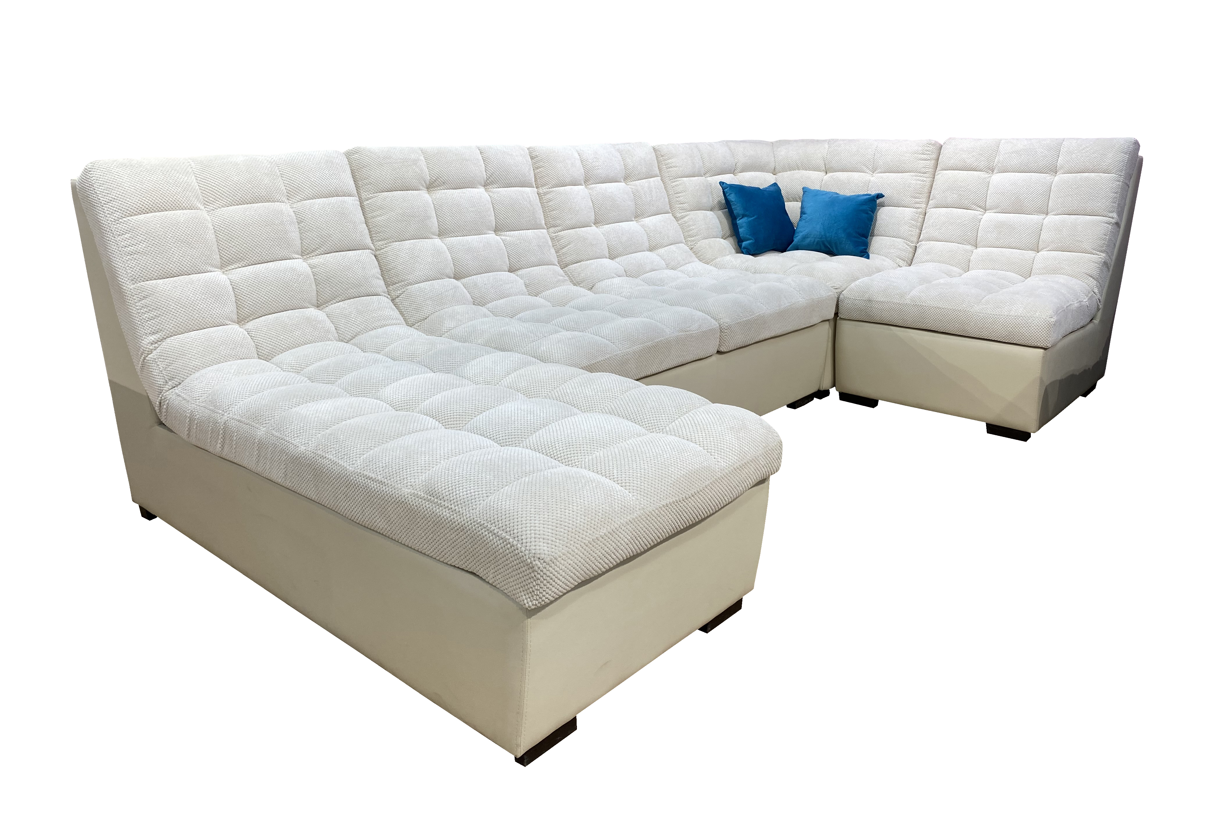 Ширина спального места 250 смГлубина спального места 145 смШирина 335 смГлубина 185 смТип ДиванКоличество мест 4 и болееКонструкция МодульныйМеханизм раскладки ПумаРасположение угла ВзаимозаменяемыйМатериал каркаса Береза, Ель, КомбинированныйМатериал наполнителя Пенополиуретан, Холофайбер, СинтепонМесто размещения ГостинаяТип обивки ТекстильМатериал обивки ВелюрРаскладной ДаЯщик для хранения ДаАнтиквариат НетПодлокотники НетЦвет обивки БелыйЦвет рисунка БелыйПрименение техники старения НетДекоративные подушки НетДекоративные накладки НетНожки ДаСтиль СовременныйСтрана РоссияПроизводитель Мебель НИКС