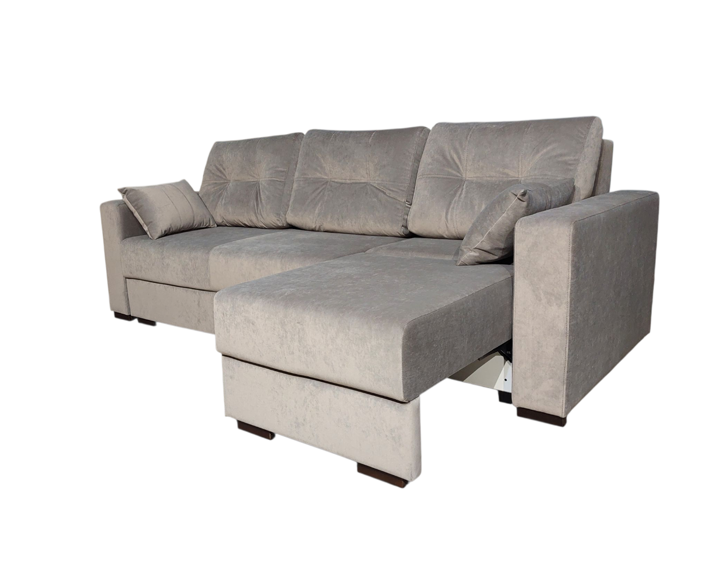 Ширина спального места 225 смГлубина спального места 167 смШирина 270 смГлубина 110 смТип ДиванКоличество мест 3Конструкция УгловойМеханизм раскладки ЕврокнижкаРасположение угла ВзаимозаменяемыйМатериал каркаса Комбинированный, Массива дереваМатериал наполнителя Пенополиуретан, Холофайбер, СинтепонМесто размещения Спальня, Гостиная, ДетскаяМатериал основания дивана Пружинный блокМатериал подлокотников Береза, Ель, КомбинированныйТип обивки ТекстильМатериал обивки ВелюрМатериал ножек ДеревоРаскладной ДаЯщик для хранения ДаАнтиквариат НетПодлокотники ДаЦвет обивки СерыйПрименение техники старения НетДекоративные подушки ДаЦвет подушек СерыйДекоративные накладки НетНожки ДаСтиль СовременныйСтрана РоссияПроизводитель Мебель НИКС