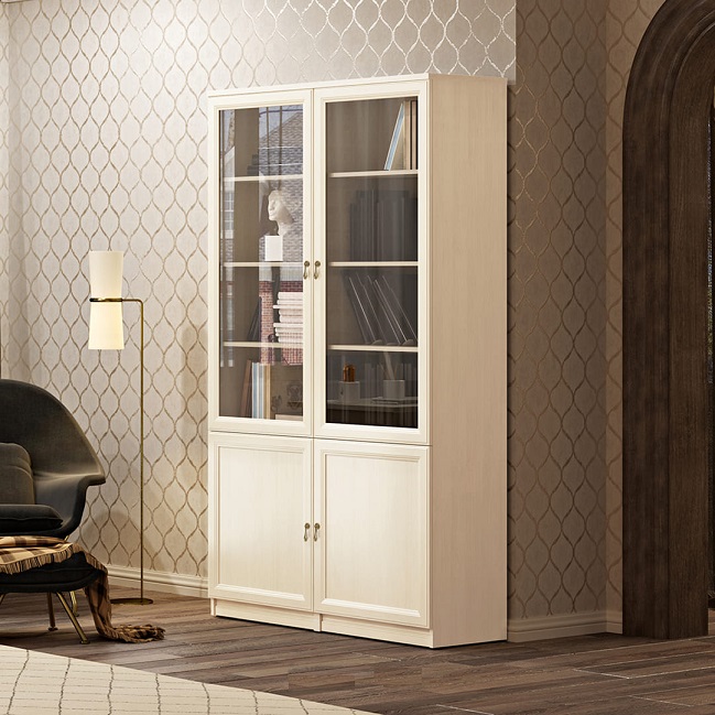 Возможность соединения модулей на межсекционную стяжку позволяет из однодверных модулей собрать шкафы для книг необходимого объема.