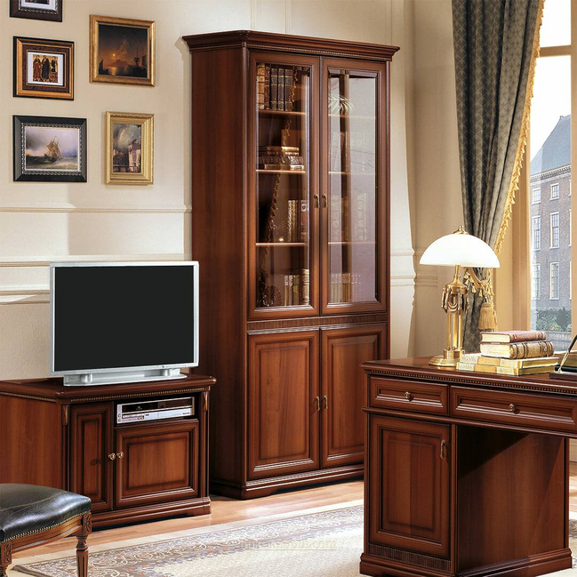 Шкаф для книг из коллекции мебели для дома. В отделке фасада используются декоративные элементы ручной работы.