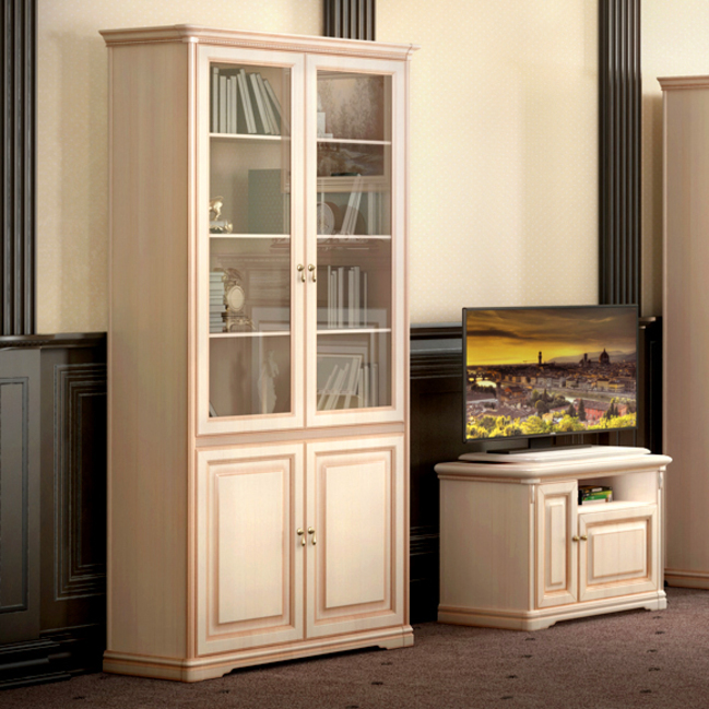 Шкаф для книг из коллекции мебели для дома. В отделке фасада используются декоративные элементы ручной работы.