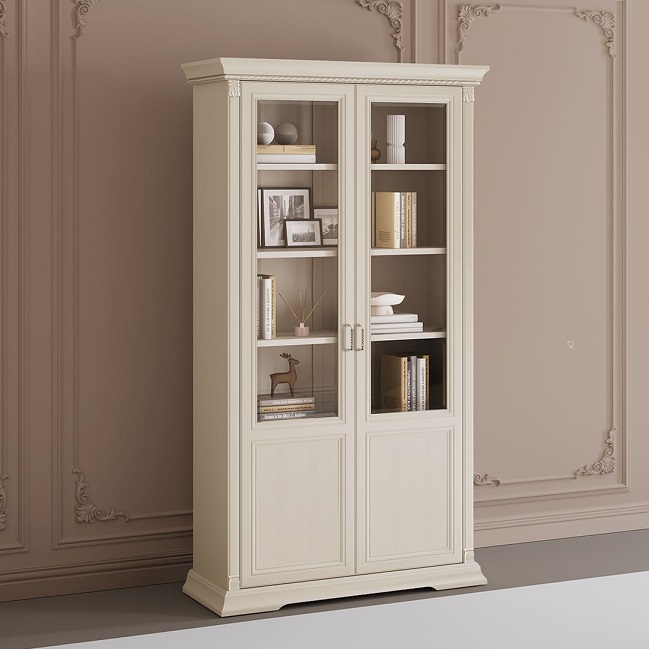 Шкаф для книг двухдверный из коллекции Лоренцо. В изделии используется шпон и массив ясеня.