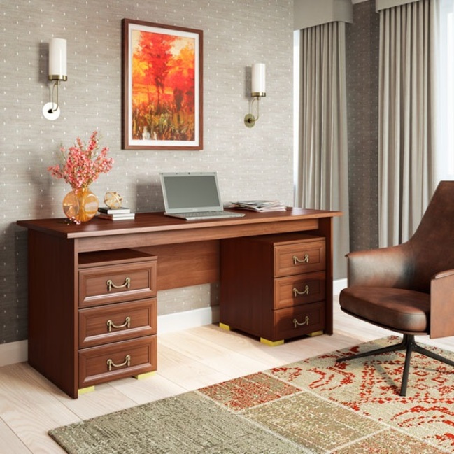 Недорогой письменный стол прекрасно подойдет для домашнего кабинета. Цена стола указана без стоимости тумбы. Дополнительно к столу Вы можете приобрести тумбы с тремя выдвижными ящиками.