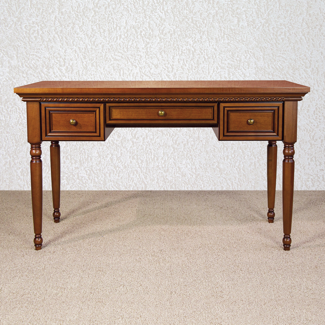 Стол письменный из набора мебели для Lorenzo. Цоколя, бруски крышки, колонны и накладные профили передних стенок ящиков выполнены из массива бука, крышка облицована шпоном красного дерева.