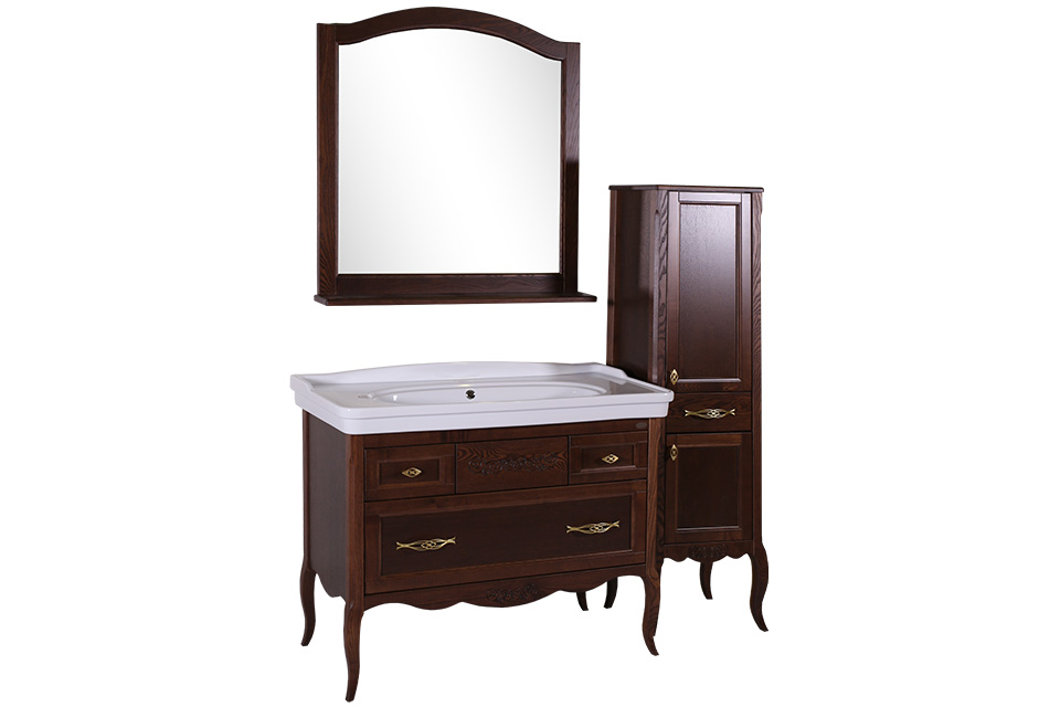 Совокупность легкости и изящества в изысканном и утонченном европейском классическом стиле комплекта Модерн 105 , изготавливаемого из массива натурального дерева, позволяет оригинально и лаконично решить эксклюзивный интерьер ванной комнаты. На поверхности мебели подчеркивается текстура дерева.