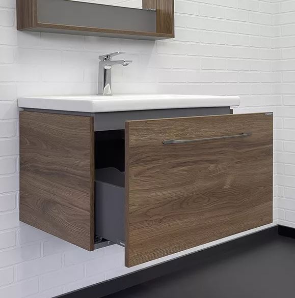 Подвесная тумба с одним большим выдвижным ящиком оборудованным системой плавного закрывания. Корпус тумбы изготовлены из влагостойкого ДСП. Тумба подготовлена для подключения водоснабжения снизу.Представленная информация носит справочный характер. Пожалуйста, уточняйте наличие товара и актуальную цену по телефону магазина.