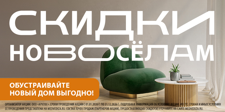 1. Покупатели, приобретшие новую квартиру или дом в период последних 2-х лет на момент оформления покупки в магазине с 01.01.2026 г. по 31.12.2026 г.